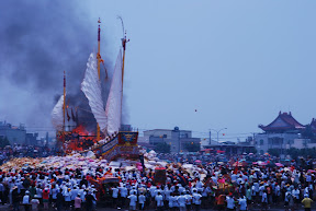 高雄縣茄萣鄉12年一度的賜福宮九朝王醮活動,建醮活動維持1 個多月,動員全鄉人力投入,家家戶戶門前都放上節慶用的燈篙,造王船、迎請王爺、繞境、燒王船(象徵王爺乘船離去),統稱為王船祭典,斥資五百萬元建造的王船,4月30日遶境、5月3日燒王船,陣容十分浩大!